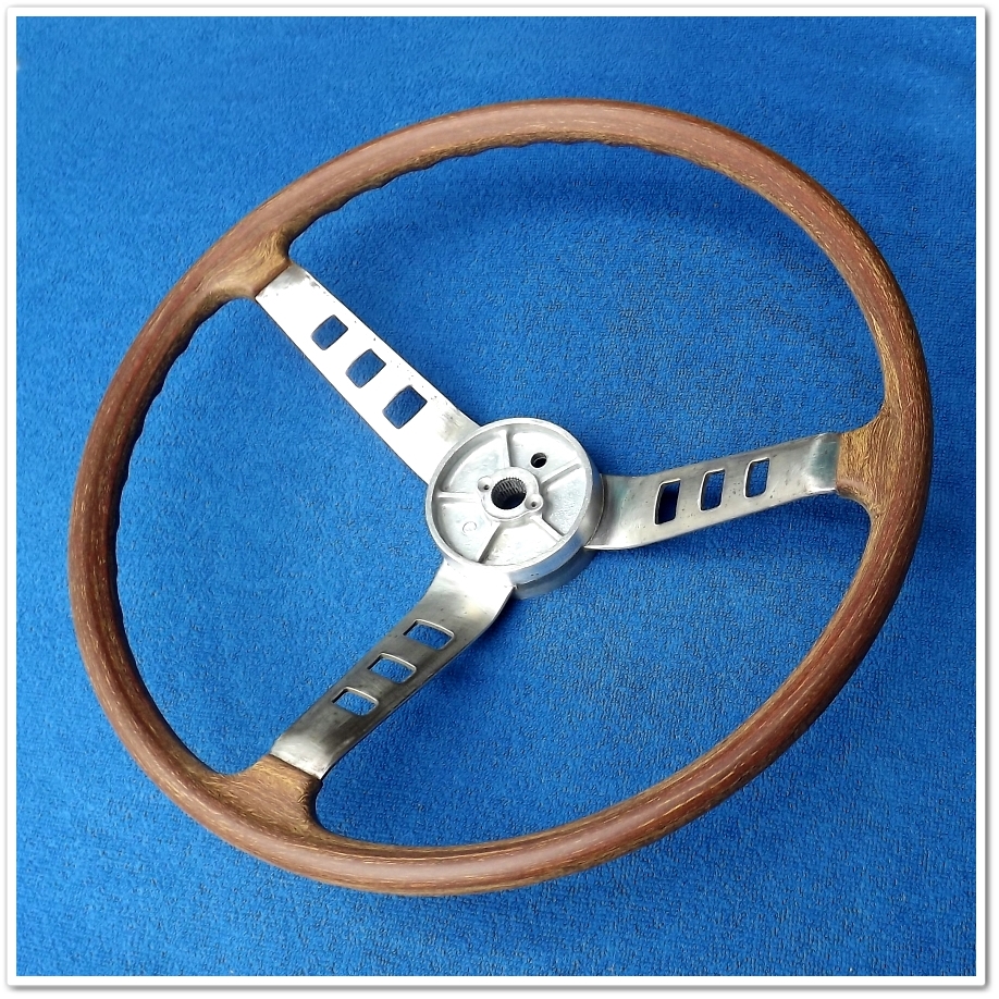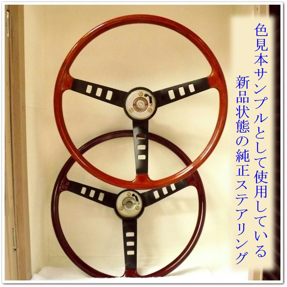 ■あまり知られていませんが、当時のS30Z、ハコスカ、ローレル、510ブルーバードなどの木製ステアリングは共通して、同一デザインで「海老茶タイプ」と「黄茶色タイプ」が存在していました。