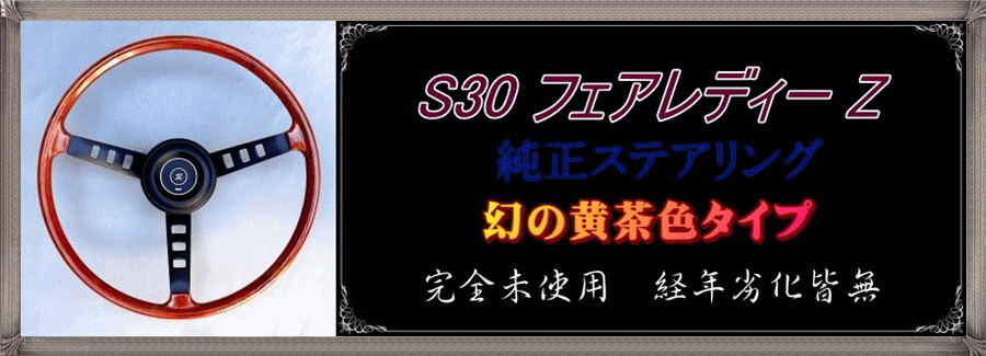 ■流通している S30Z純正ステアリングのほとんどがエビ茶色ですが、本品は、当時のカタログ掲載写真と同じ「黄茶色タイプ」の未使用・新品ですので、エビ茶色の新品とは次元が異なる希少な品です。