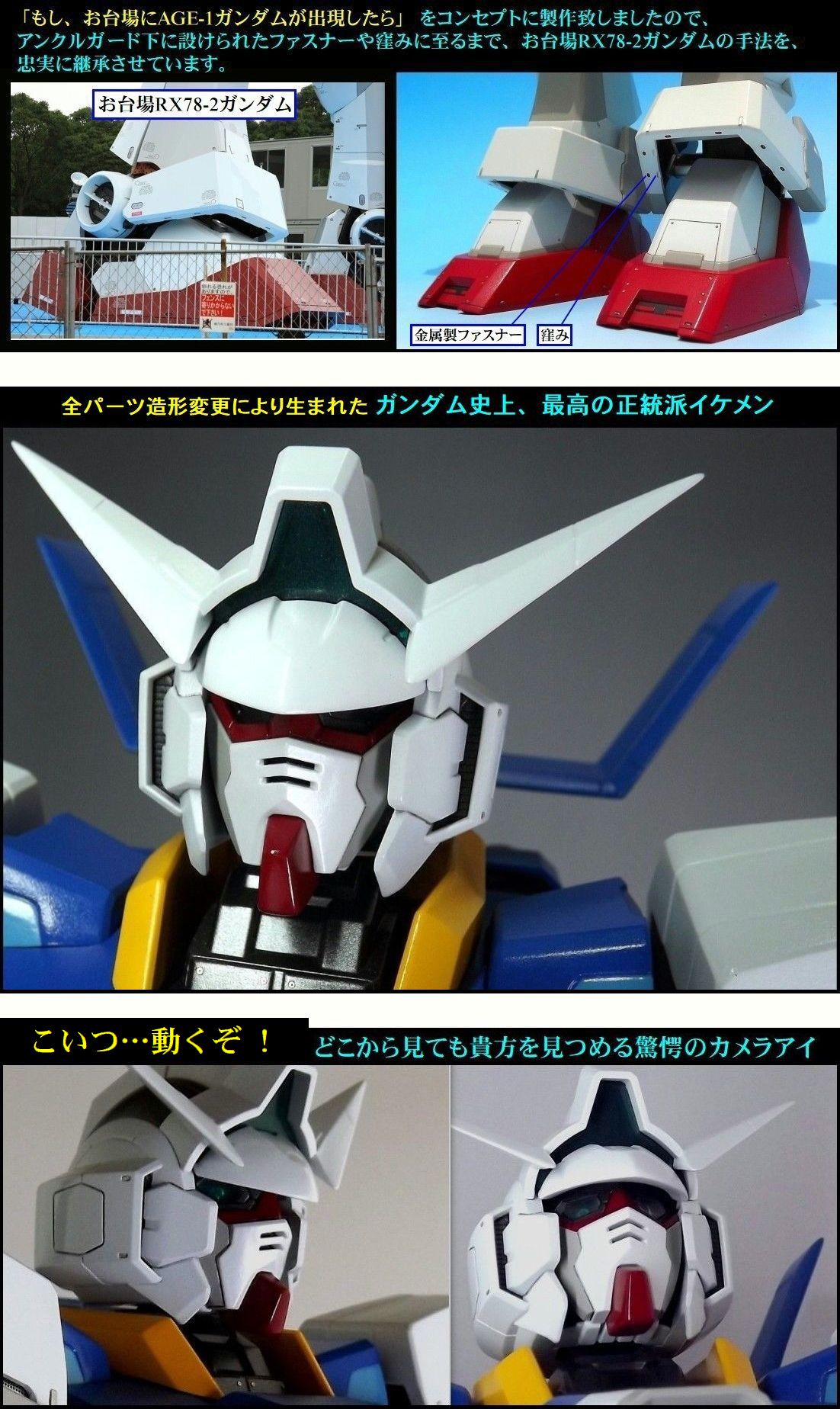 本作品は「AGE-1ガンダム ハイディテール画稿」を基に、お台場ガンダムのリアルさをAGE-1ガンダムで再現させようとしたものです。
