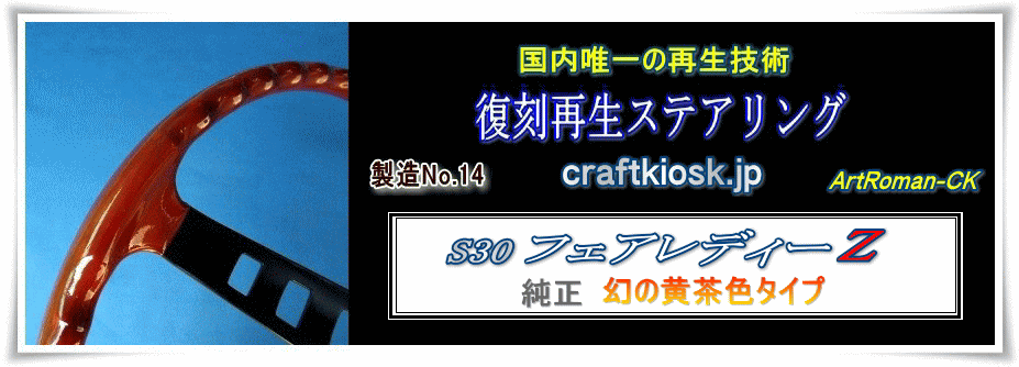 ◎「海老茶タイプ」は、当工房が、S30Zの最終モデルを新車で購入し(1976年)、3か月後にレザー製の「スポーツコーナーステアリング」(ダットサンコンペティションハンドル)に換装して保管していたため、今日まで新品状態を保つことができた品です。